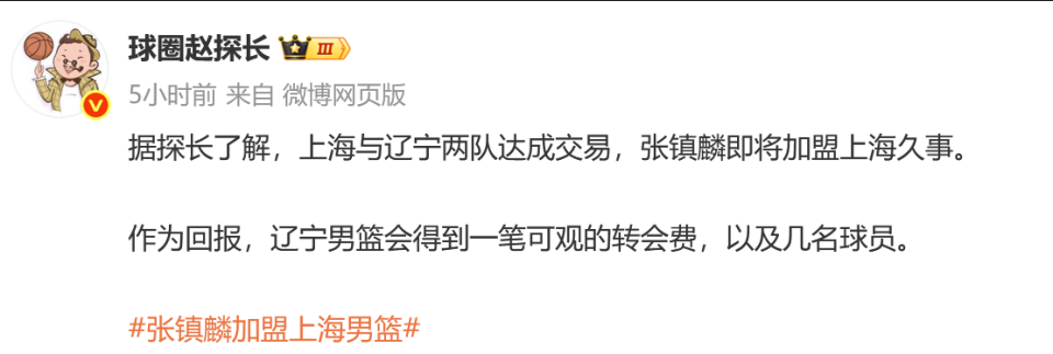 杏彩体育官方网站据国内媒体报道,上海将与辽宁达成重磅交易,辽宁送出张镇麟,从上海队得到两名年轻球员和部分现金。鉴于此前多次传出辽篮资金紧张的消息,而这次他们直接把球队未来的招牌张镇麟卖到上海,不难看出球队可能确实遭遇了困境。